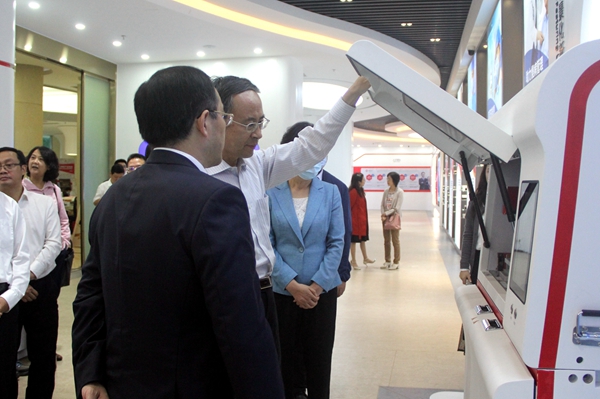 在参观实验室时,万立骏主席一行详细了解了350vip浦京集团新冠核酸检测方案、HPV检测方案、呼吸道检测方案以及血筛检测方案等一系列“350vip浦京集团方案”。