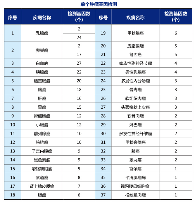 运用遗传性肿瘤基因检测手段,检测多种癌症易感基因,分析上百种易感基因突变信息,结合已有变异基因与癌症发生关系,评估出癌症发病的相对风险,在最早阶段进行个性化健康管理,有效的预防癌症的发生、发展,改善和维护健康状态,享受高品质生活。